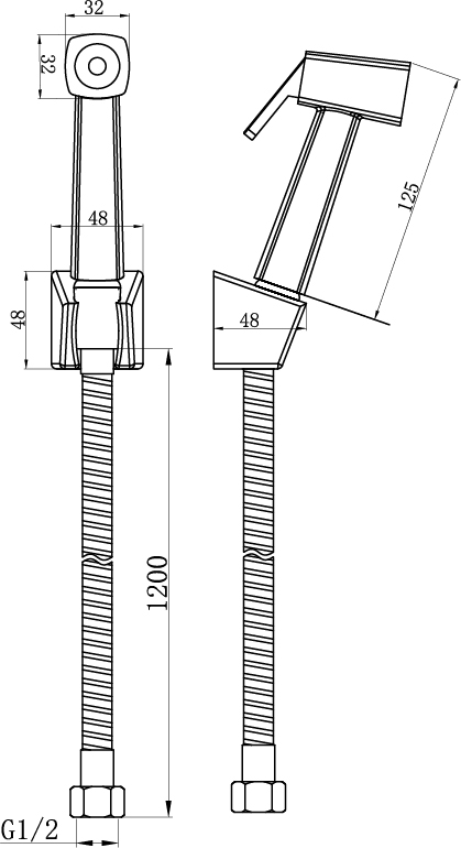Spray with base and 1.2m hose Chrome "Body and holder:ABS, Hose:S.S"